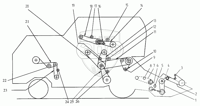 Каталог запасных частей к технике: КЗК Енисей КЗС-950. Схема передач правой стороны