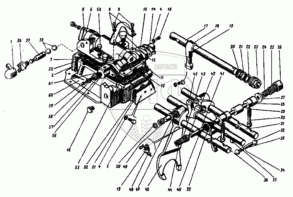 Каталог запасных частей к технике: КЗК Енисей КЗС-950. Механизм переключения коробки диапазонов