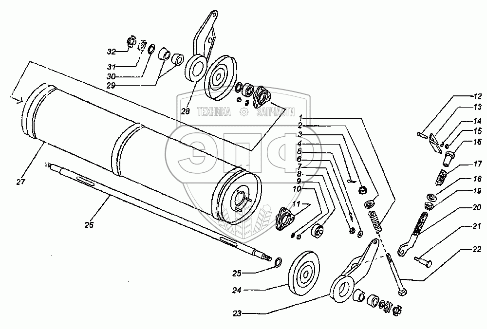 Каталог запасных частей к технике: КЗК Енисей КЗС-950. Вал транспортера нижний