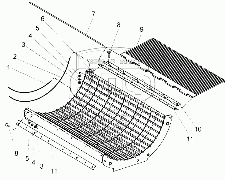 Каталог запасных частей к технике: КЗК Енисей КЗС-960. Подбарабанье первого барабана
