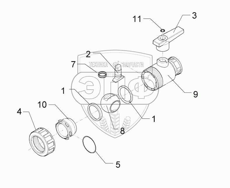 Каталог запасных частей к технике: Lemken Primus 10 (Часть 1). F610137 Ball valve
