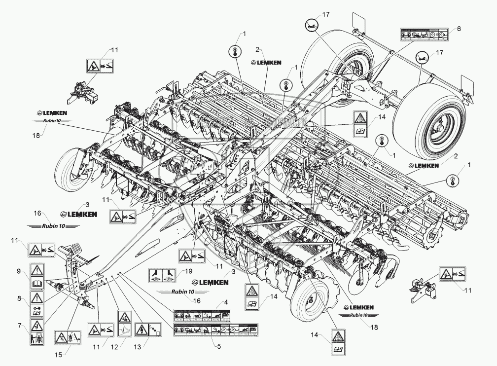 Каталог запасных частей к технике: Lemken Rubin 10/700 KUA. 59010129 Label set