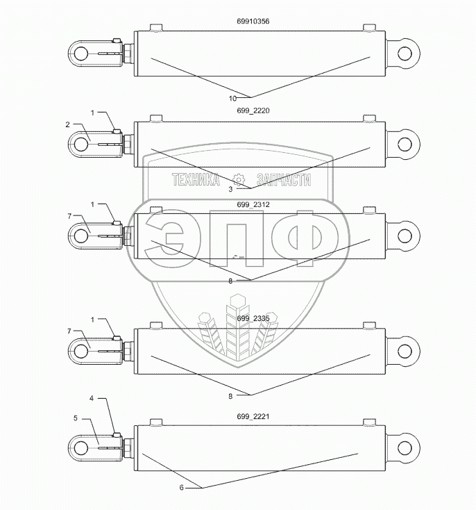 Каталог запасных частей к технике: Lemken Rubin 12/600 KUA (A). 5752355 Hydraulic ram