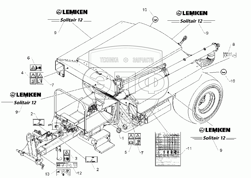 Каталог запасных частей к технике: Lemken Solitair 12/5800SW. 59010133 Label set