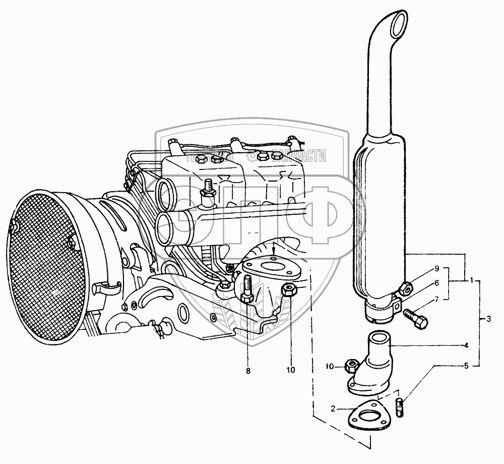 Каталог запасных частей к технике: ЛТЗ-55. Глушитель