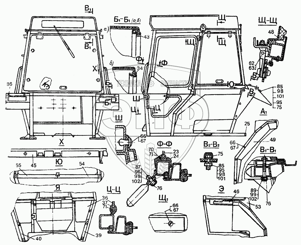 Каталог запасных частей к технике: ЛТЗ-55. Кабина