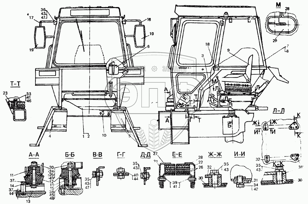 Каталог запасных частей к технике: ЛТЗ-55. Кабина с крыльями
