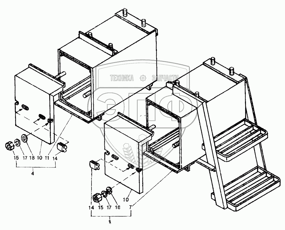 Каталог запасных частей к технике: ЛТЗ-55. Ящики аккумуляторные