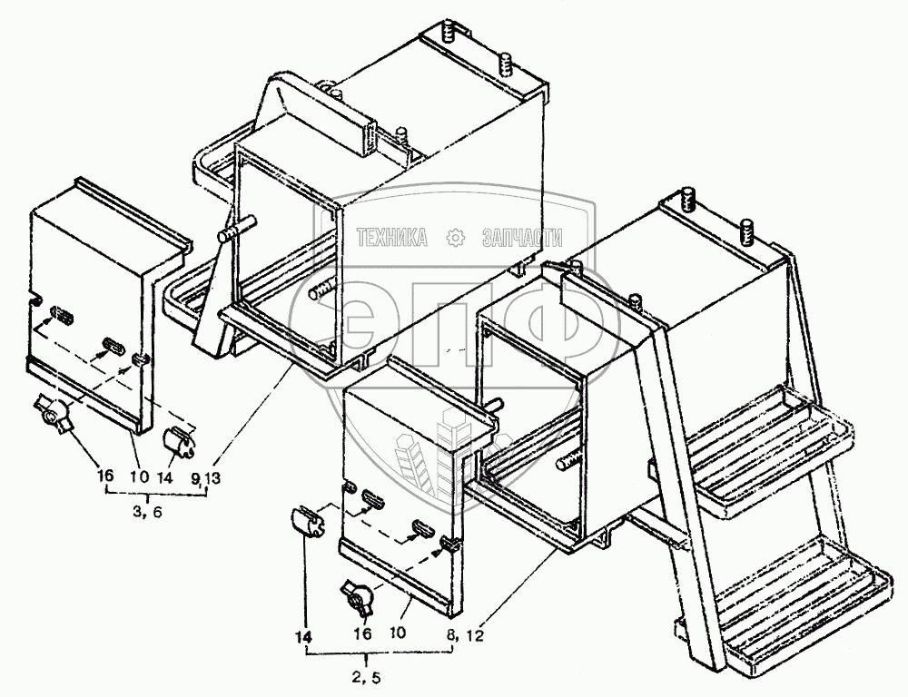 Каталог запасных частей к технике: ЛТЗ-55. Ящики аккумуляторные