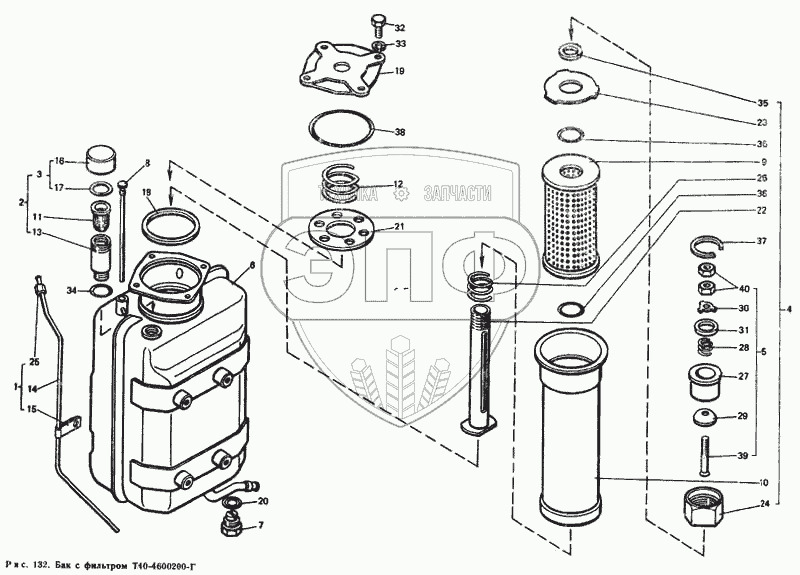 Каталог запасных частей к технике: ЛТЗ Т-40М. Бак с фильтром Е40-4600200-Г