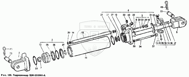 Каталог запасных частей к технике: ЛТЗ Т-40М. Гидроцилиндр Ц90-1212001-А