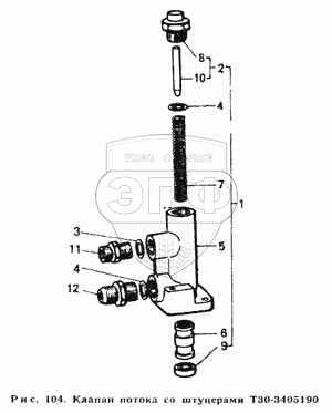 Каталог запасных частей к технике: ЛТЗ Т-40М. Клапан потока со штуцерами Т30-3405190