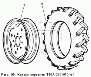 Каталог запасных частей к технике: ЛТЗ Т-40М. Колесо переднее Т40А-3101010-А1