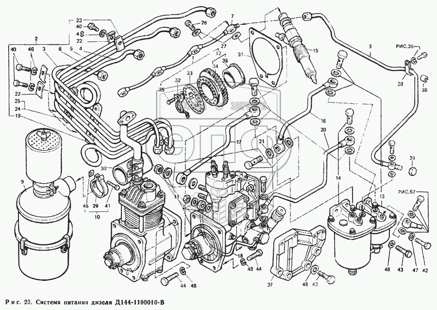 Каталог запасных частей к технике: ЛТЗ Т-40М. Система питания дизеля Д144-1100010-В