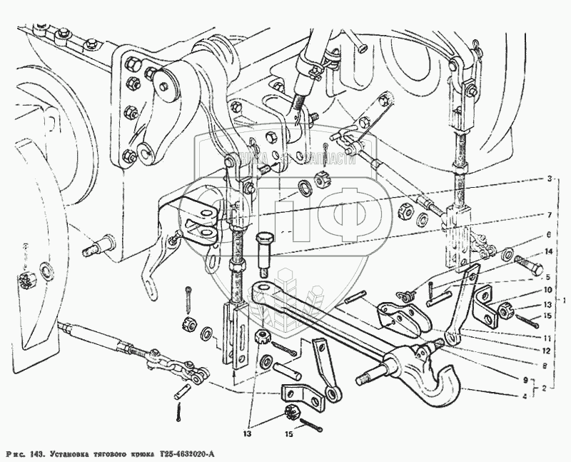 Каталог запасных частей к технике: ЛТЗ Т-40М. Установка тягового крюка Т25-4632020-А