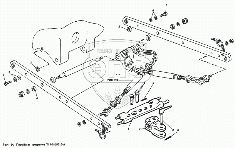 Каталог запасных частей к технике: ЛТЗ Т-40М. Устройство прицепное Т25-2805010-А