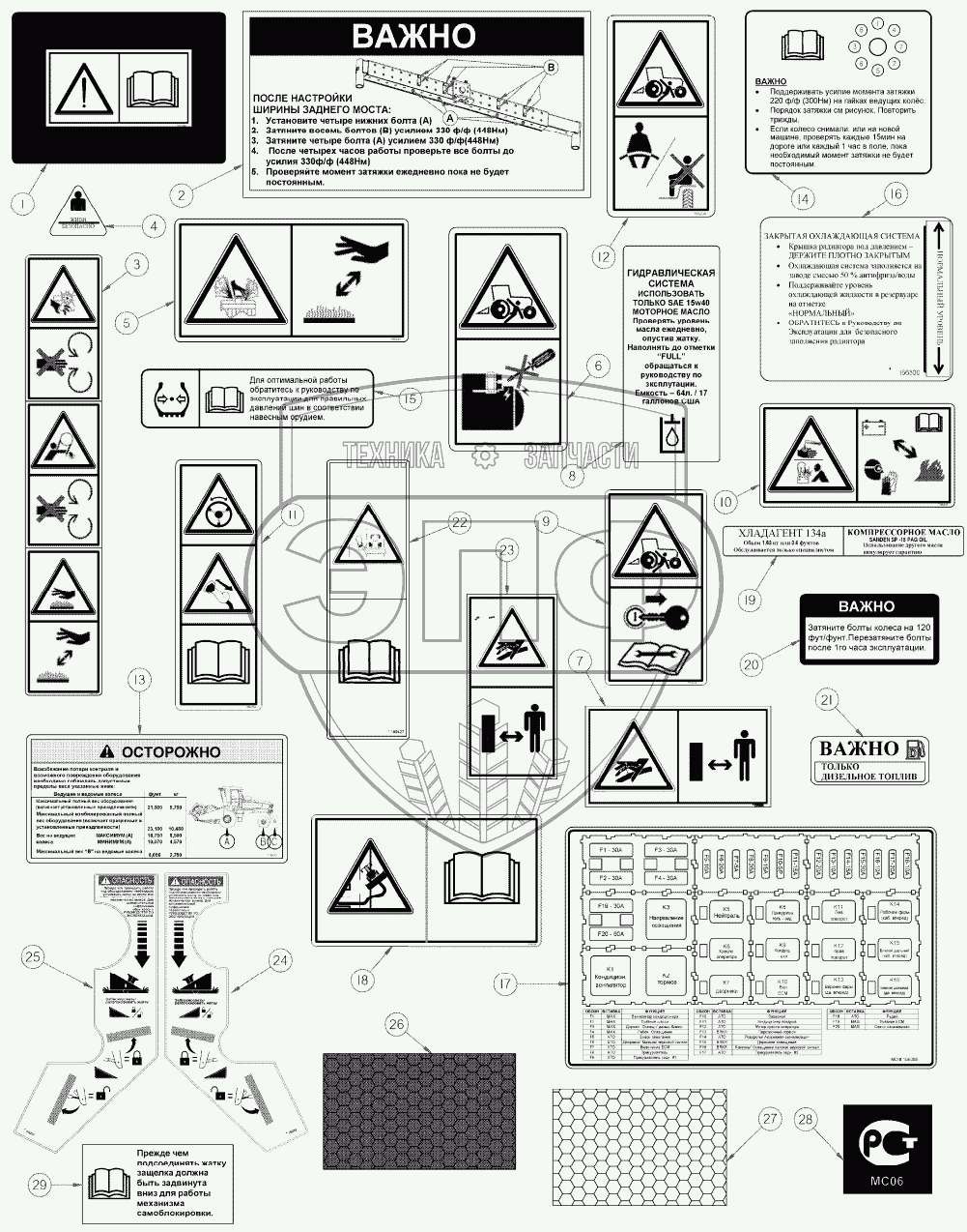 Каталог запасных частей к технике: MacDon-M155. Комплект декалей на русском языке
