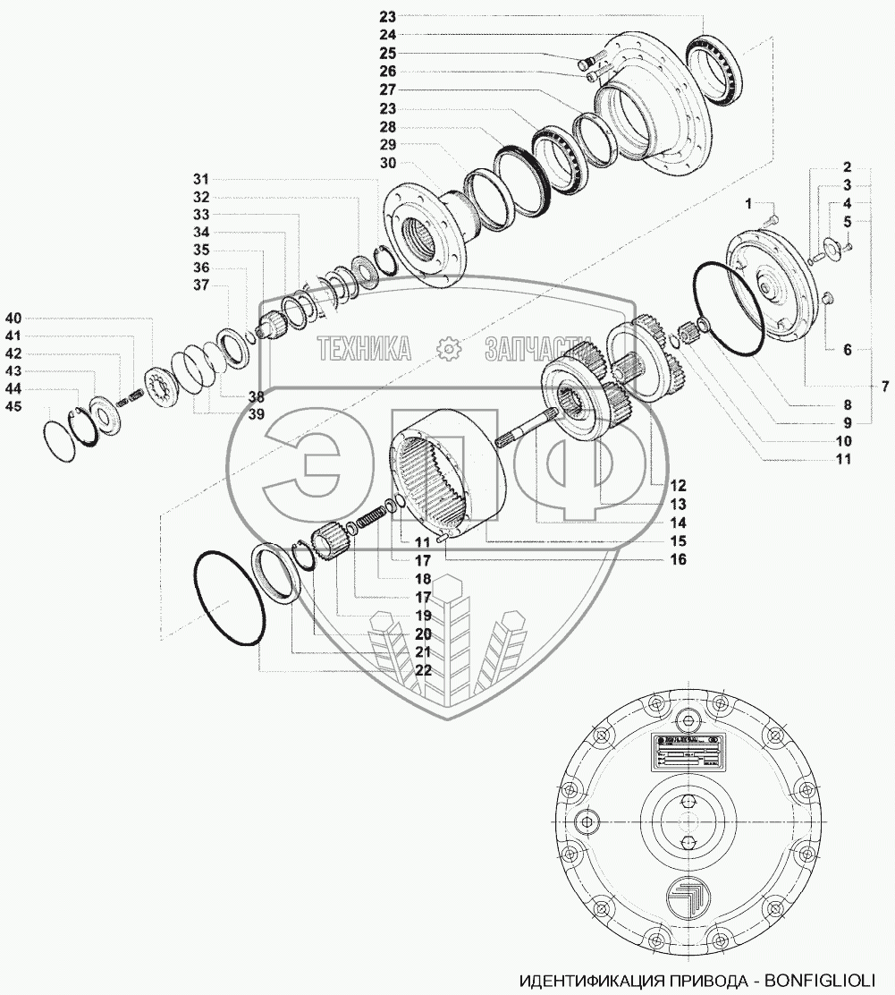 Каталог запасных частей к технике: MacDon-M155. Планетарный механизм (привод колес)