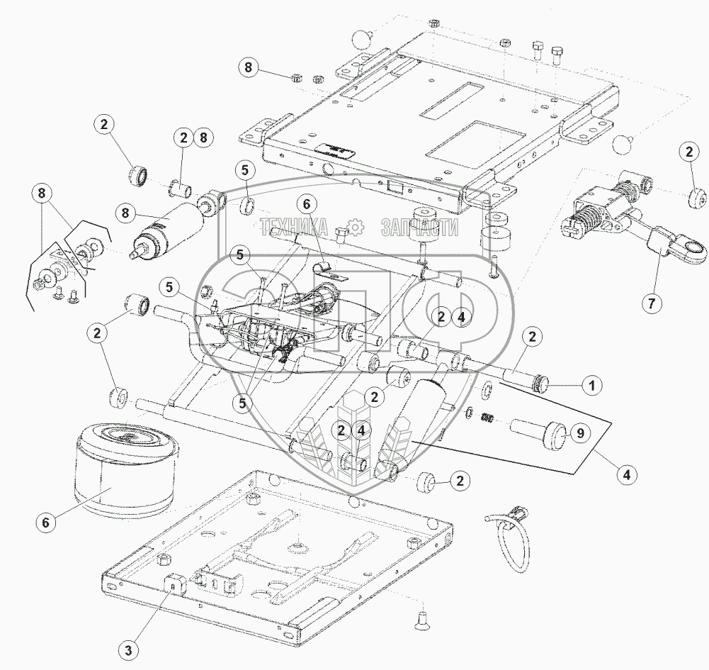 Каталог запасных частей к технике: MacDon-M155. Подвеска сидения и внутренние компоненты