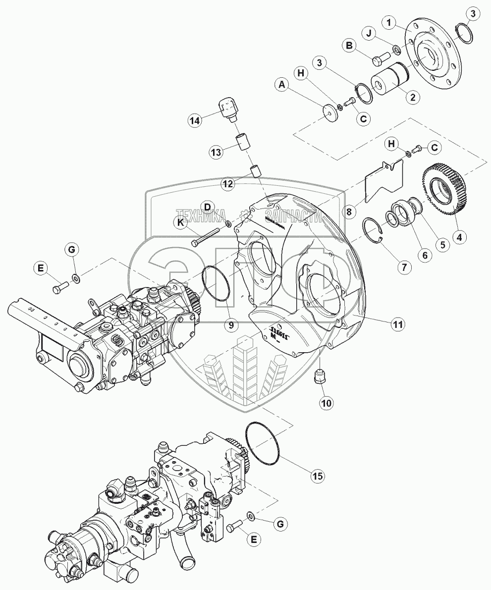 Каталог запасных частей к технике: MacDon-M155. Редуктор двигателя