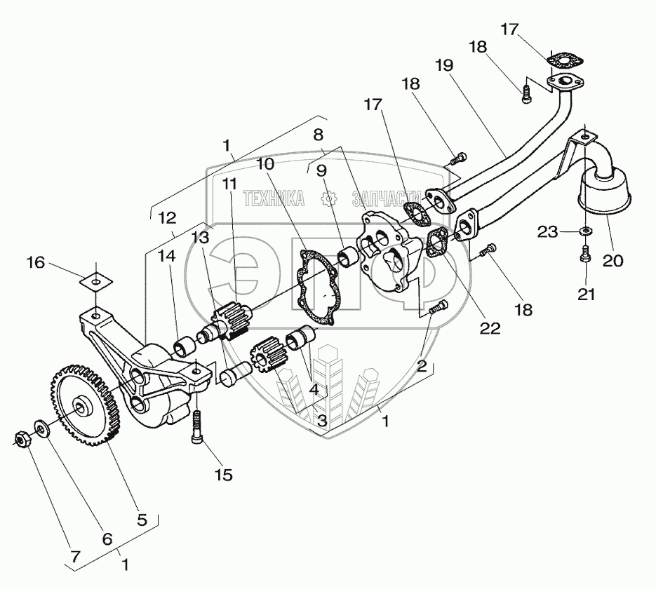 Каталог запасных частей к технике: Massey Ferguson Fend-8300/8350. Engine, Oil Pump