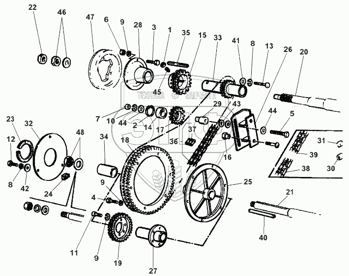 Каталог запасных частей к технике: Massey Ferguson MF-7244 Activa. Chain Drive For