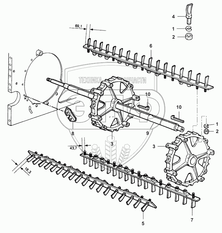 Каталог запасных частей к технике: Massey Ferguson MF-7244 Activa. Peg Drum