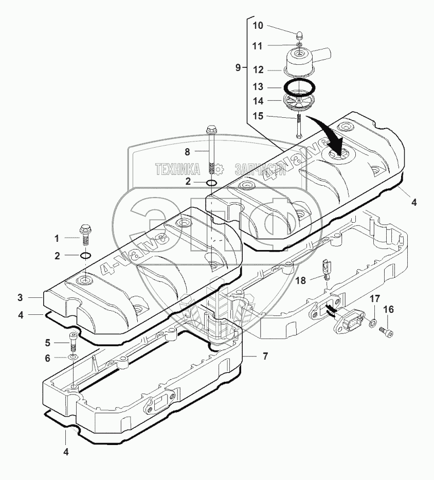 Каталог запасных частей к технике: Massey Ferguson MF-8650 Dyna-VT. Cylinder Head Cover