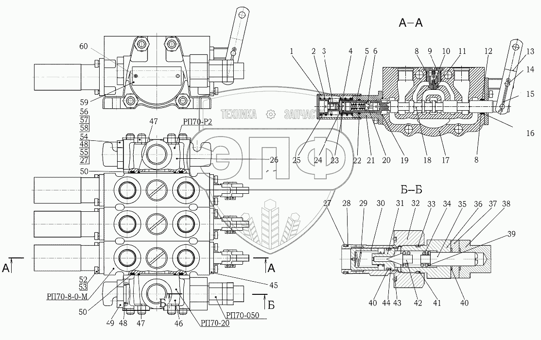 Каталог запасных частей к технике: МТЗ 1025/1025.2/1025.3. Гидрораспределитель РП70