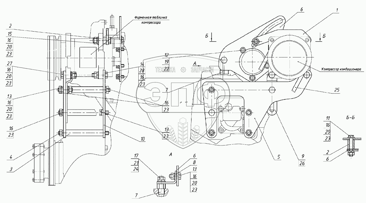 Каталог запасных частей к технике: МТЗ 1025.5. Установка компрессора