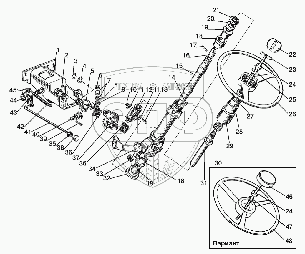 Каталог запасных частей к технике: МТЗ 1220. Колонка рулевая