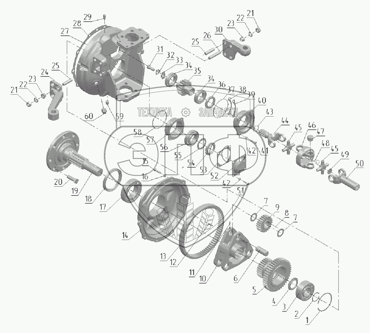 Каталог запасных частей к технике: МТЗ 1220. Редуктор конечной передачи переднего ведущего моста
