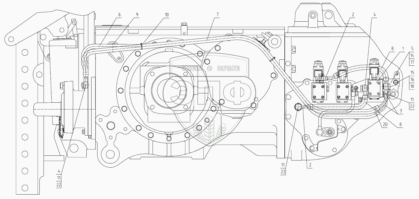 Каталог запасных частей к технике: МТЗ 1220. Управление задним валом отбора мощности