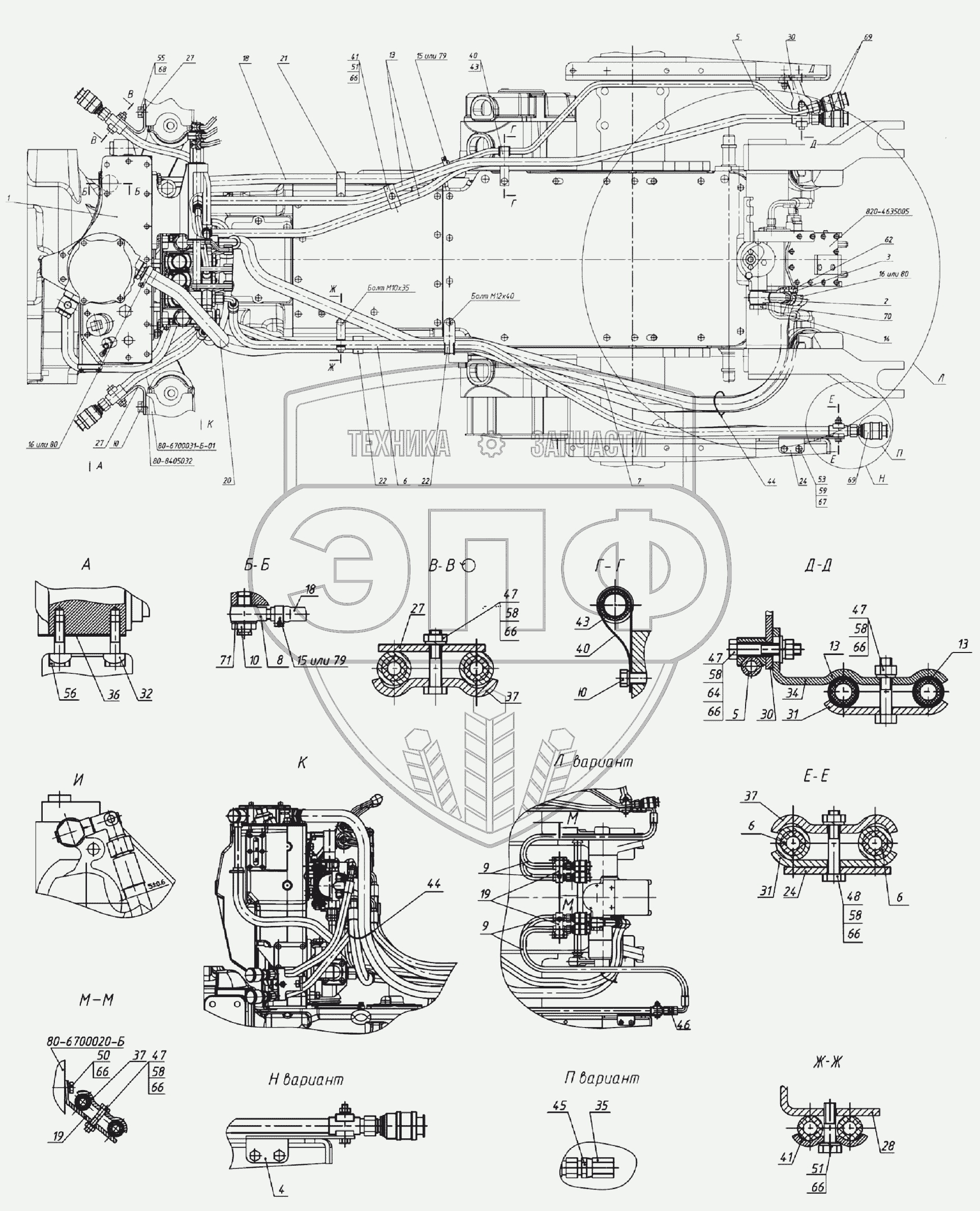 Каталог запасных частей к технике: МТЗ 1220.5. Гидросистема Р1221-4600010