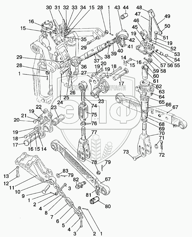 Каталог запасных частей к технике: МТЗ 1220.5. Навесное устройство с гидроподъемником
