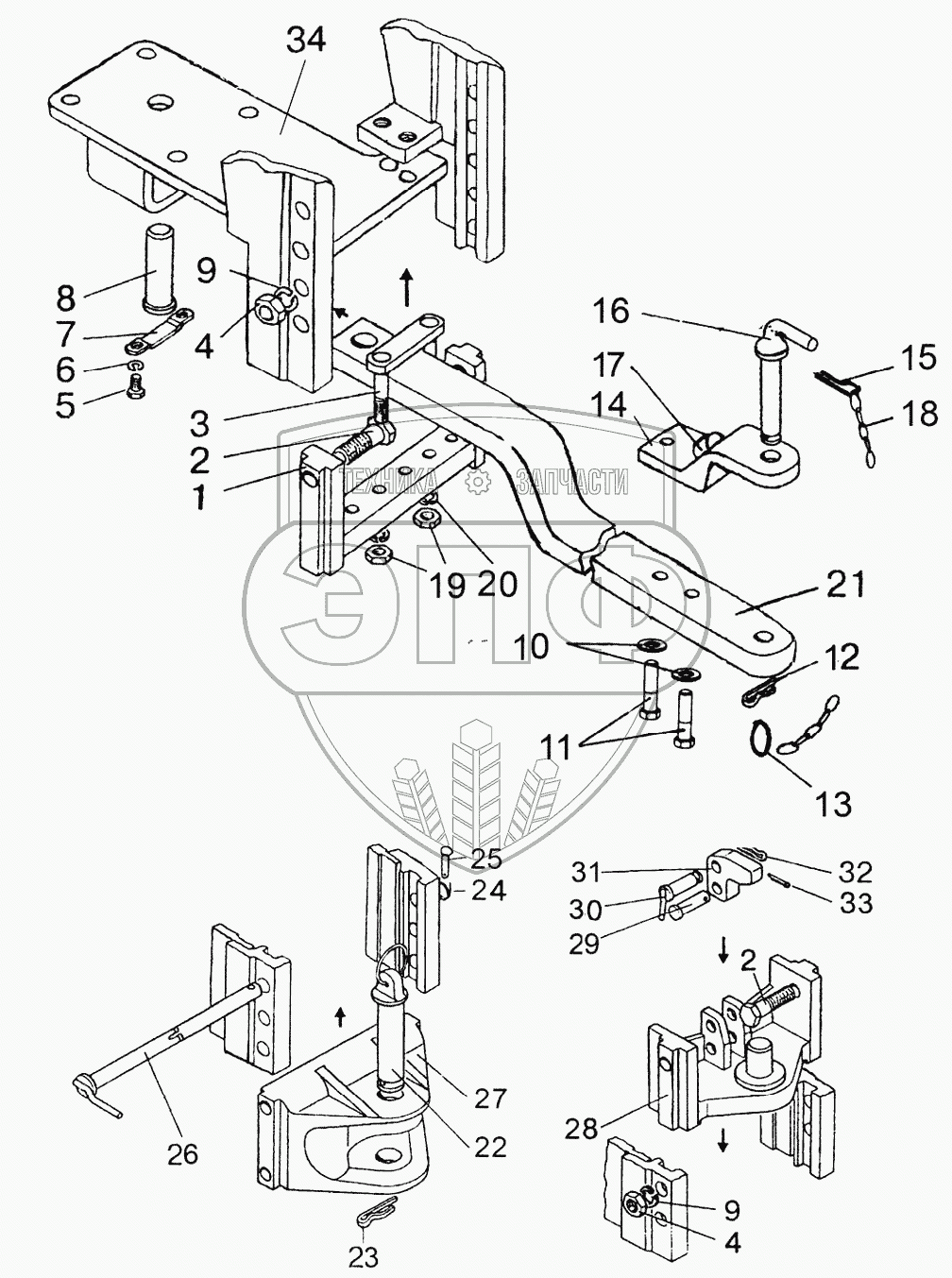 Каталог запасных частей к технике: МТЗ 1220.5. Тягово-сцепное устройство (варианты комплектации)