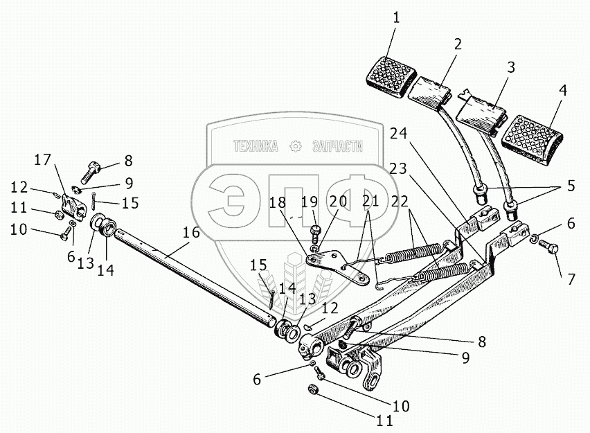 Каталог запасных частей к технике: МТЗ 1220.5. Управление тормозами