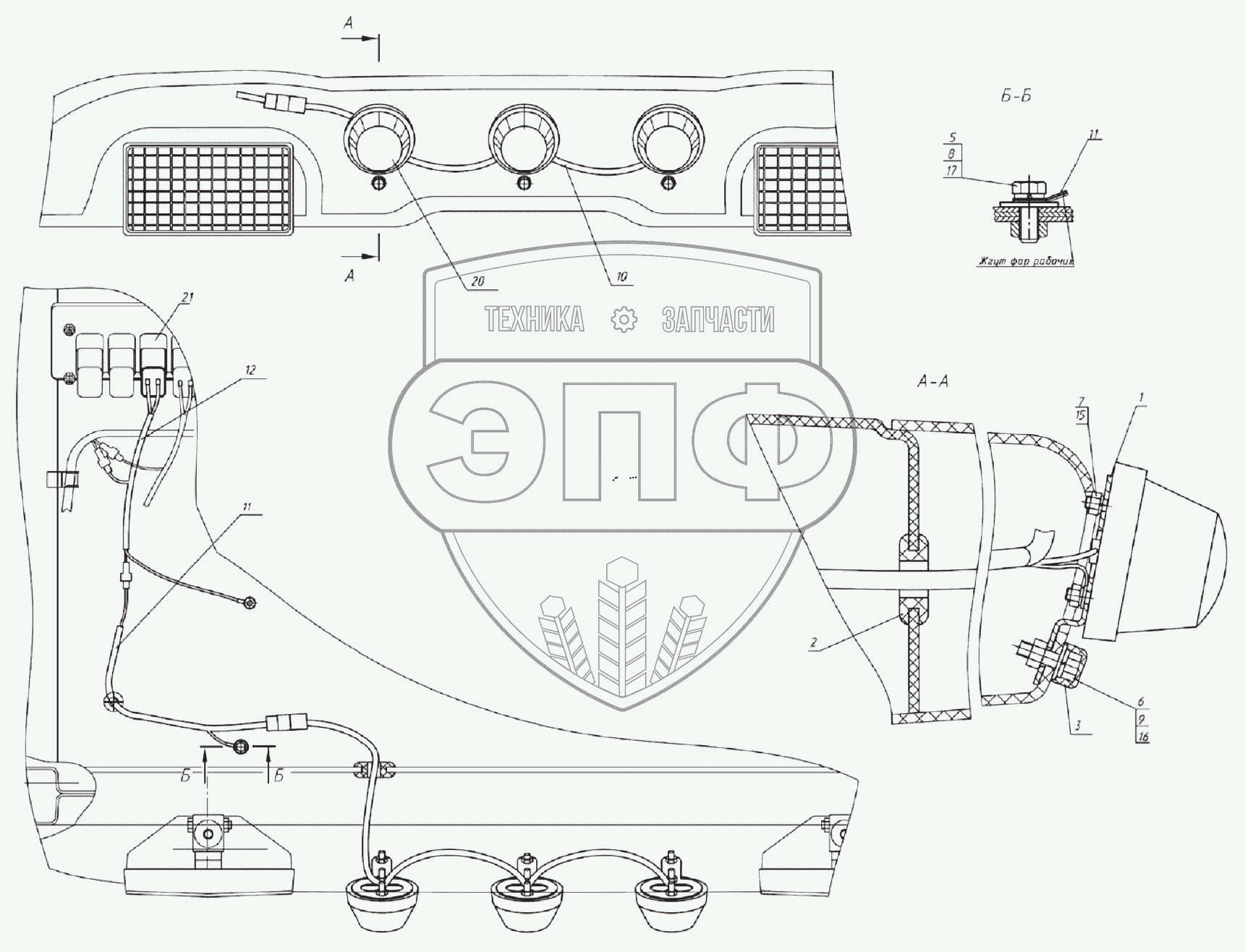 Каталог запасных частей к технике: МТЗ 1220.5. Установка фонарей автопоезда