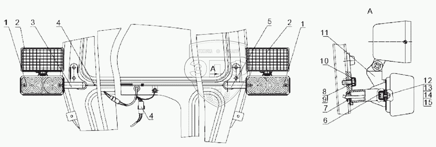 Каталог запасных частей к технике: МТЗ 1220.5. Установка фонарей передних