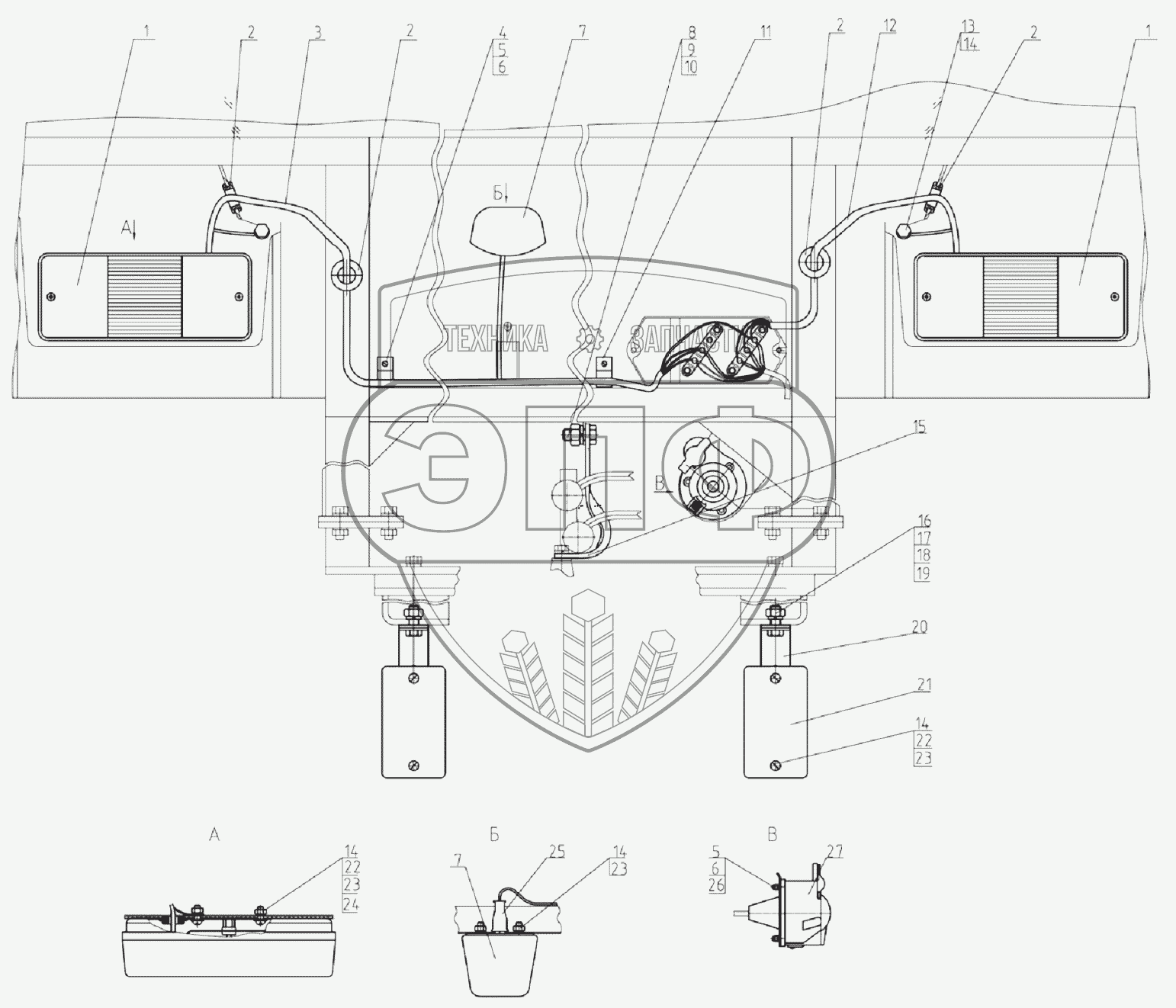 Каталог запасных частей к технике: МТЗ 1220.5. Установка фонарей задних