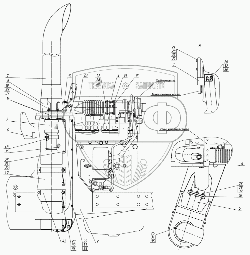 Каталог запасных частей к технике: МТЗ 1220.5. Установка глушителя