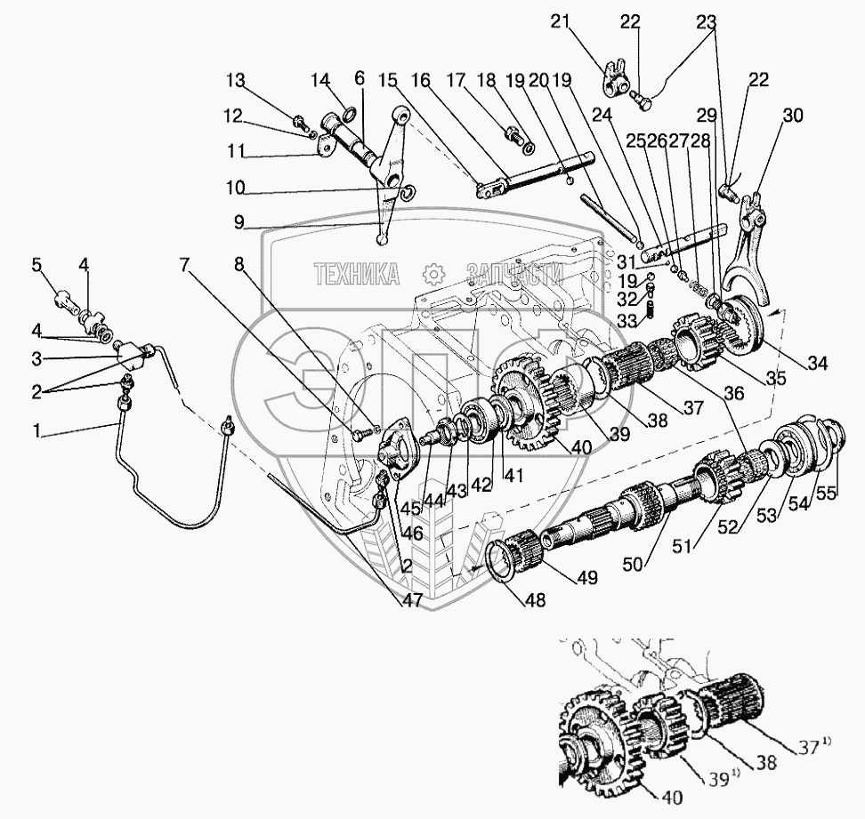 Каталог запасных частей к технике: МТЗ 1220.5. Вал пониженных передач (16F+8R)
