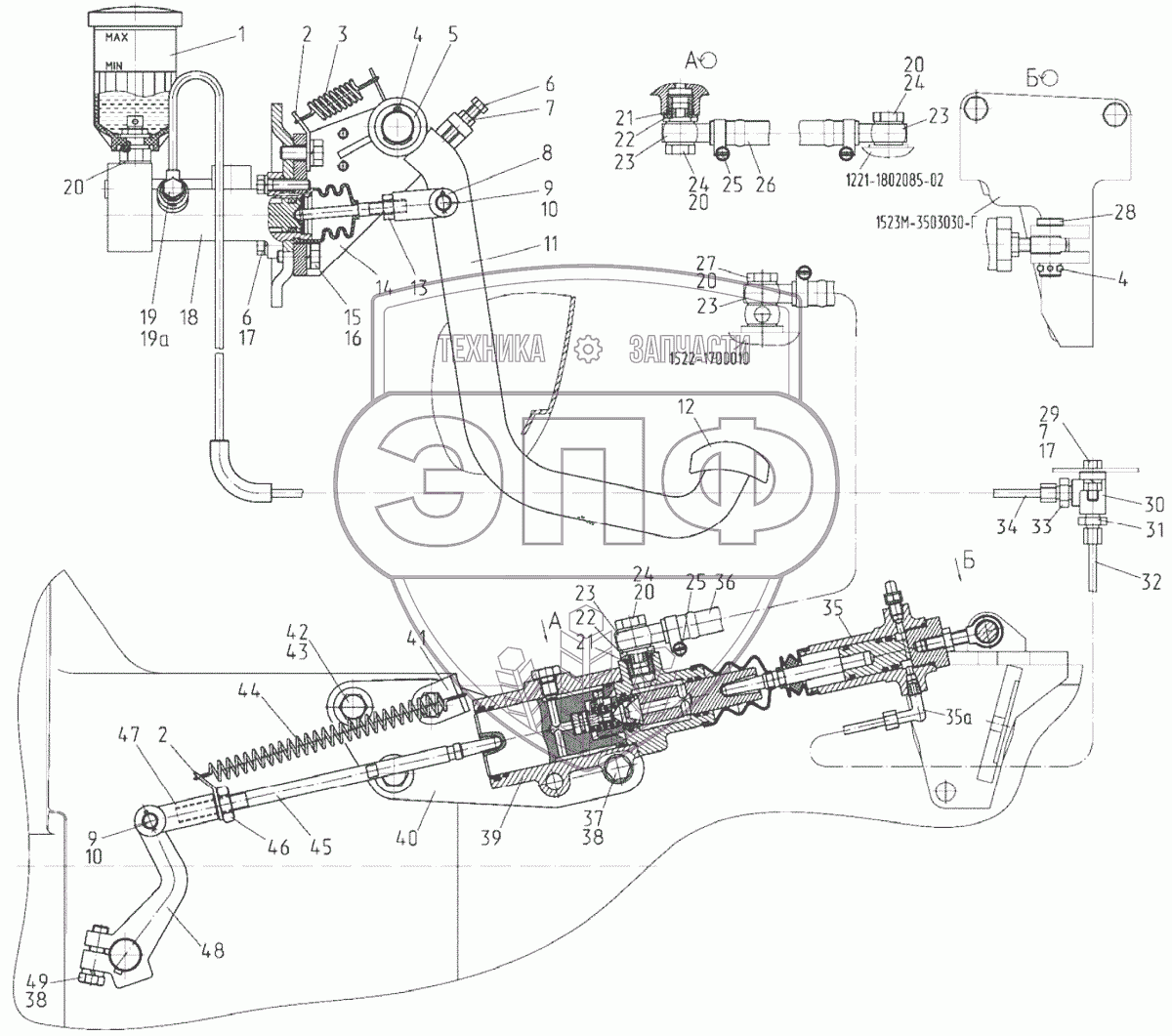 Каталог запасных частей к технике: МТЗ 1523.5. Управление сцеплением