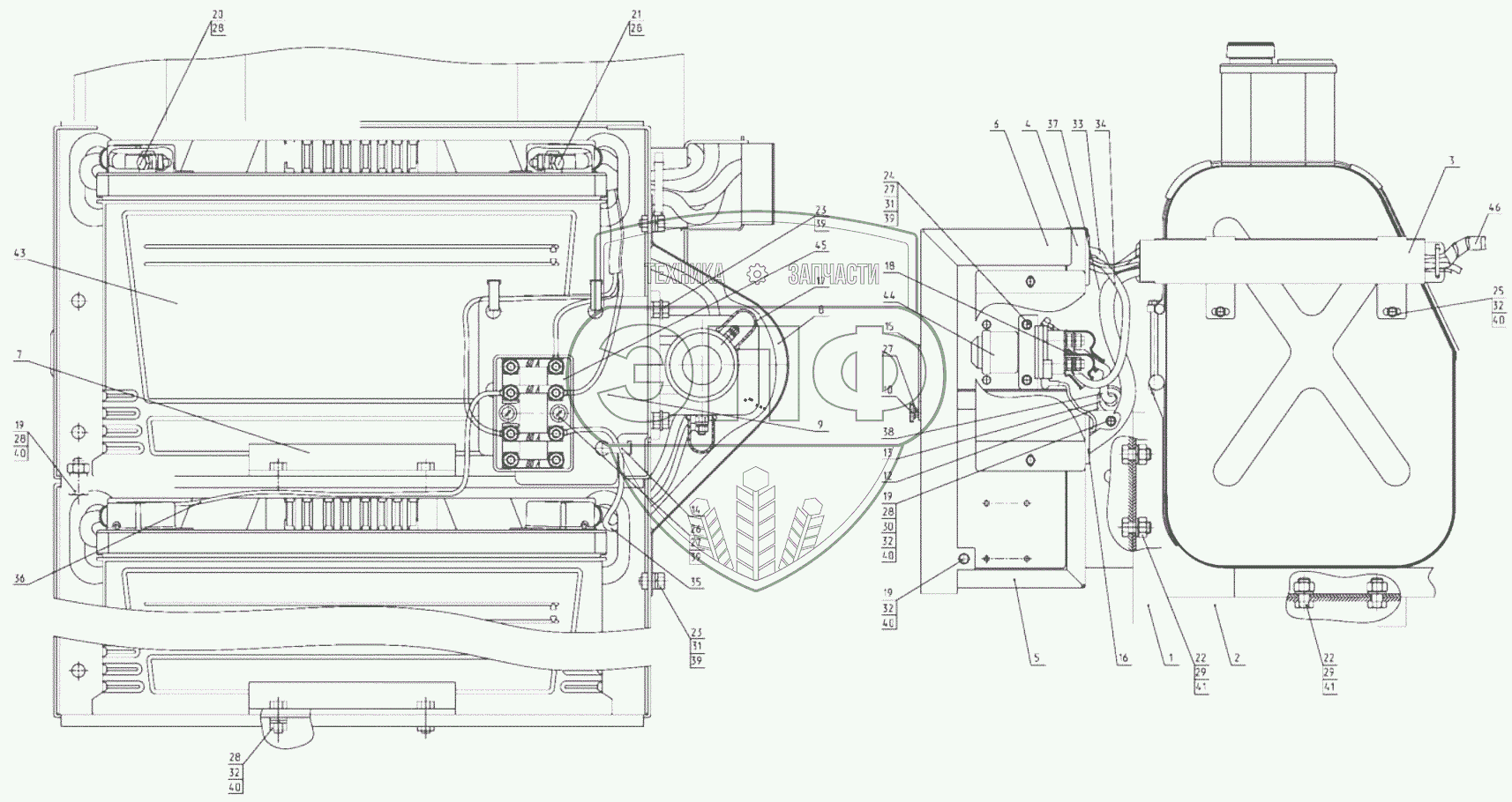 Каталог запасных частей к технике: МТЗ 1523.5. Установка батарей аккумуляторных