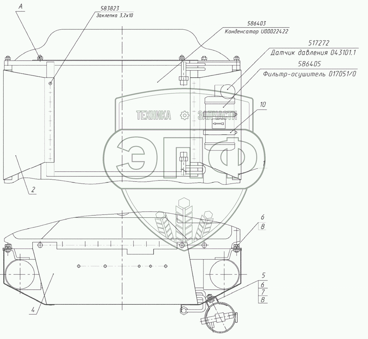 Каталог запасных частей к технике: МТЗ 1523.5. Установка конденсатора