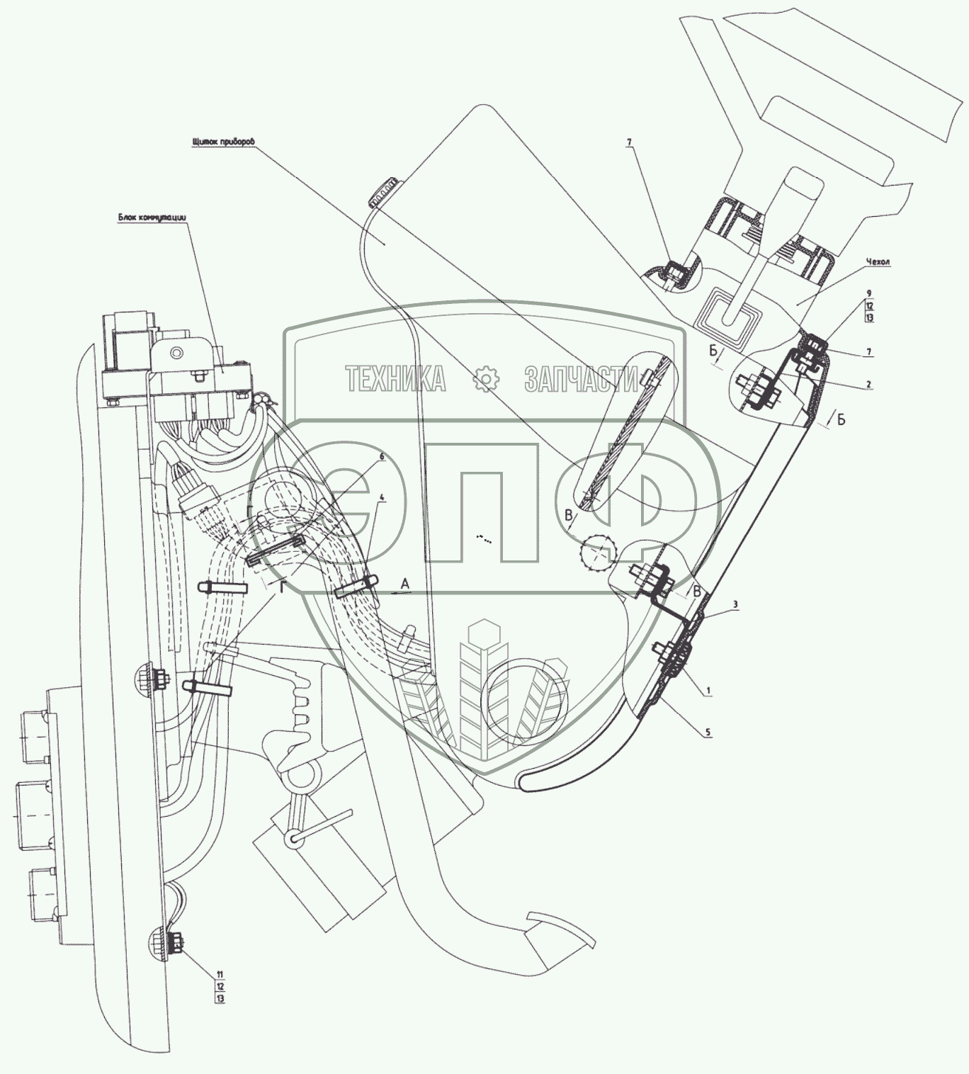 Каталог запасных частей к технике: МТЗ 1523.5. Установка щитка приборов
