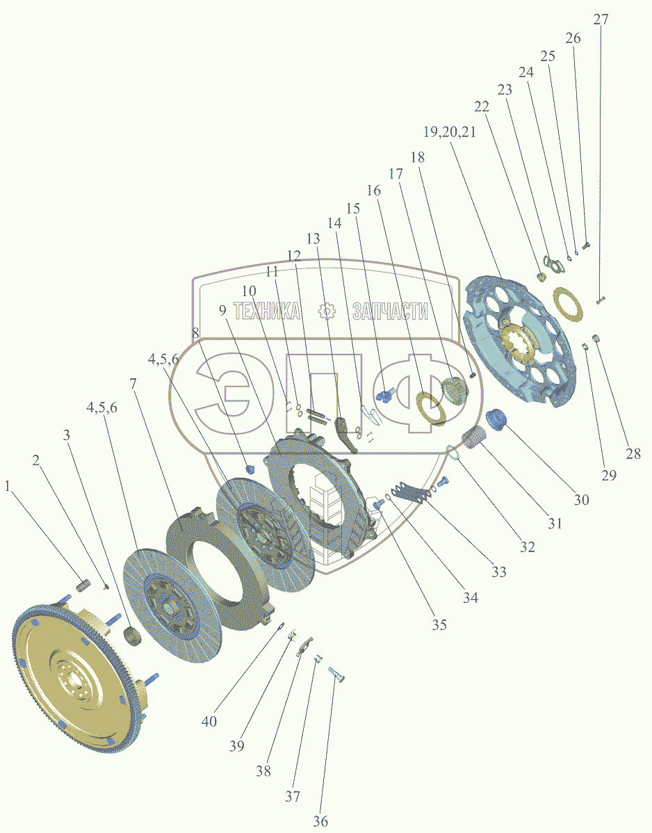 Каталог запасных частей к технике: МТЗ 1523.5. Установка сцепления 260.1-1005009
