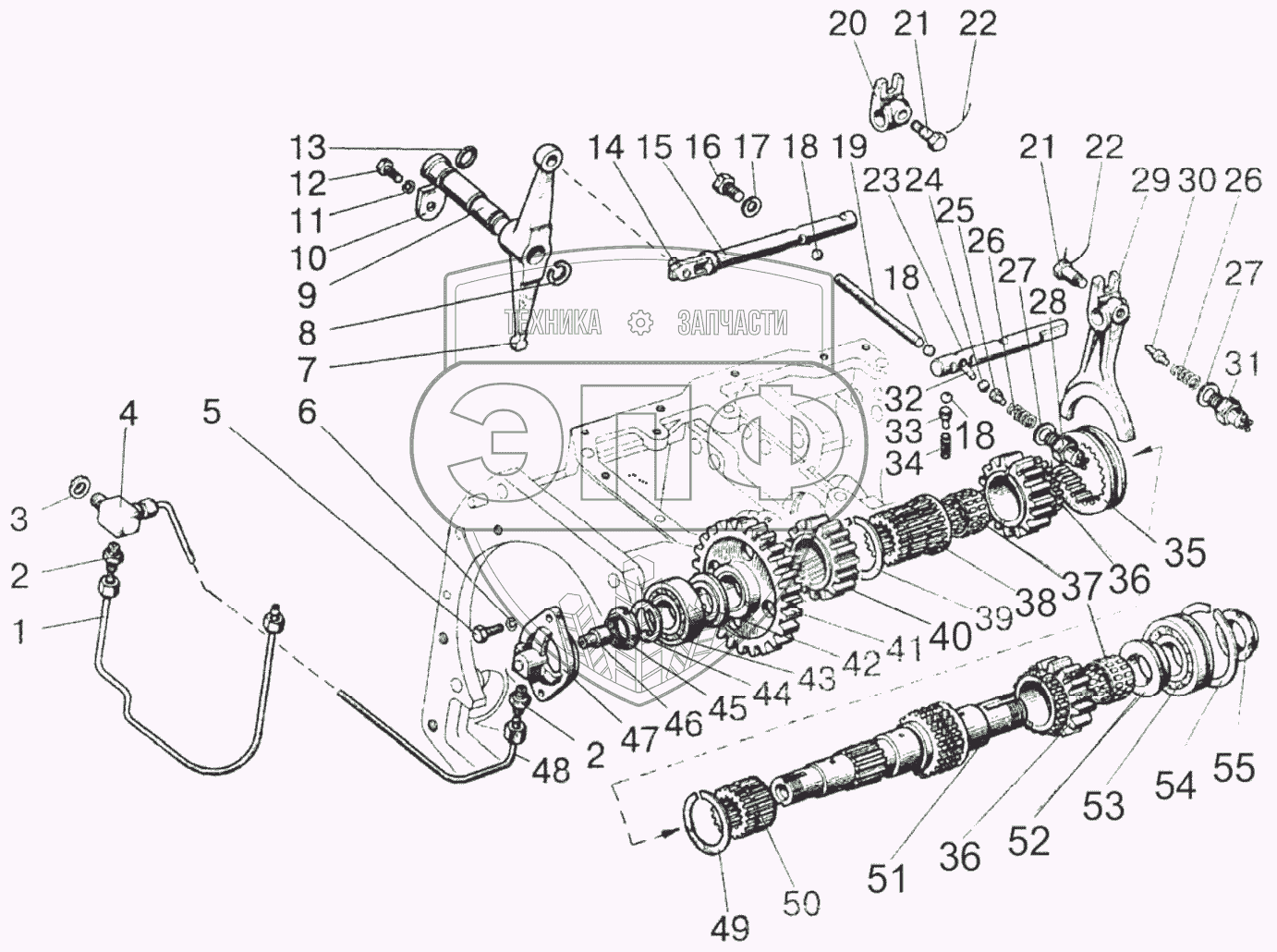 Каталог запасных частей к технике: МТЗ 1523.5. Вал пониженных передач