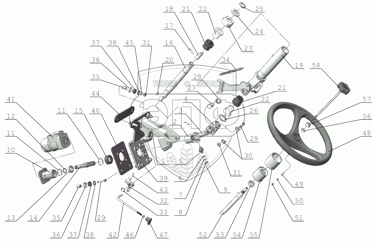 Каталог запасных частей к технике: МТЗ 1523.5 с ГМТ. Колонка рулевая