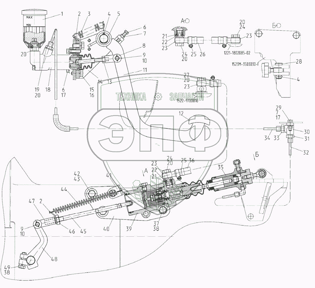 Каталог запасных частей к технике: МТЗ 1523.5 с ГМТ. Управление сцеплением
